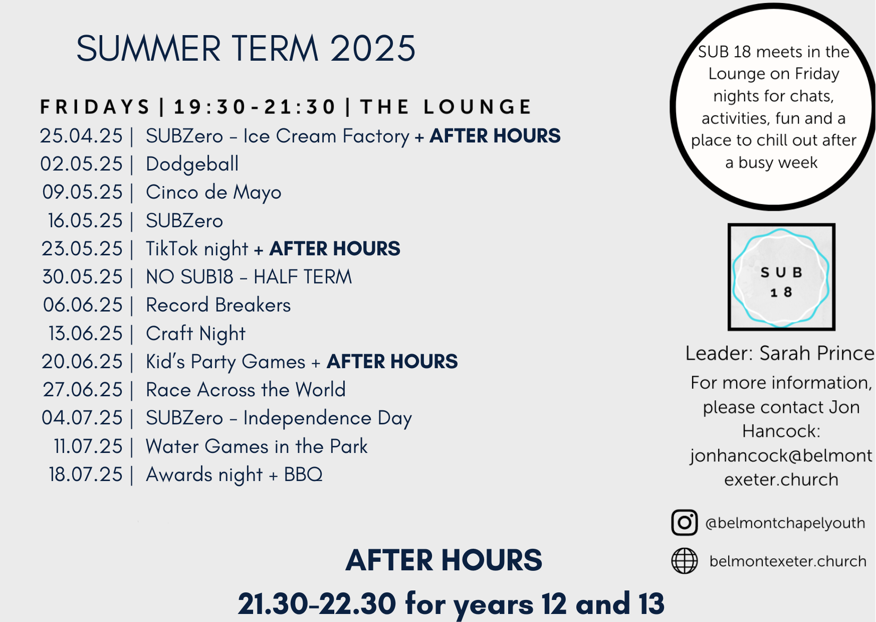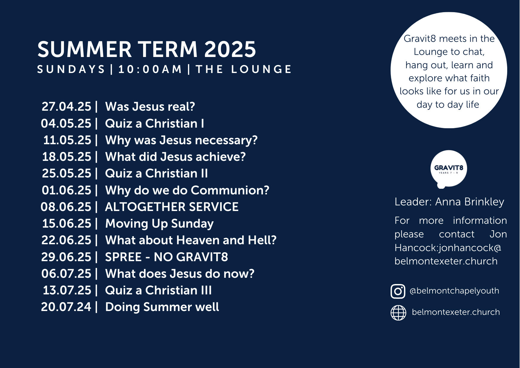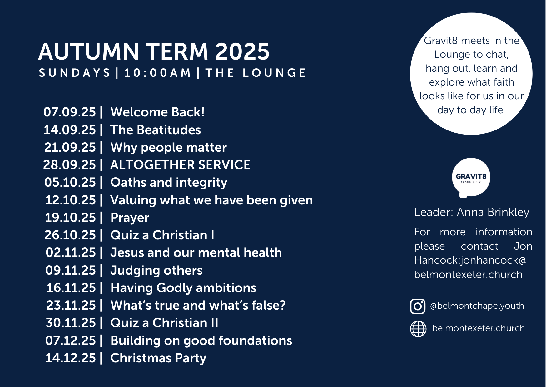 If you’d like to join for the first time get in touch with Youth Work Leader Jon Hancock at jonhancock@belmontexeter.church
